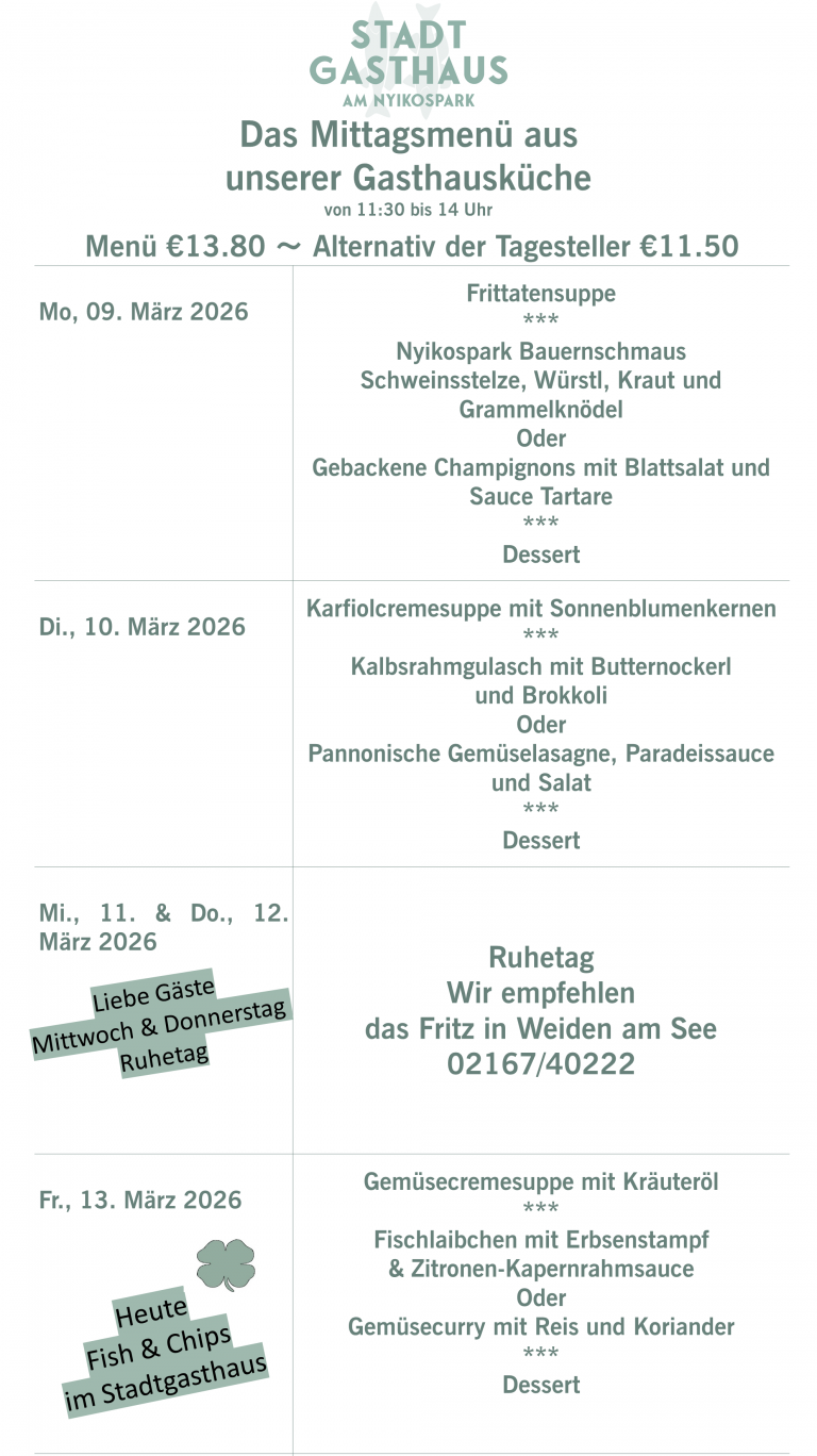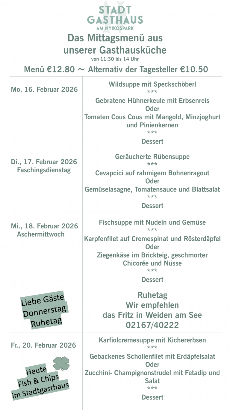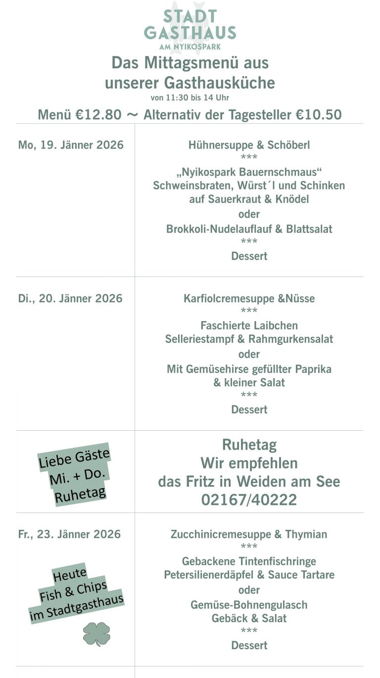 Unsere Speisekarte umfasst eine schmackhafte gutbürgerliche Küche kombiniert mit regionalen leichten Fischspezialitäten. Die abwechslungsreiche Speisekarte spiegelt die Handschrift von Küchenchef Martin Wresnig und seinem Team wider.